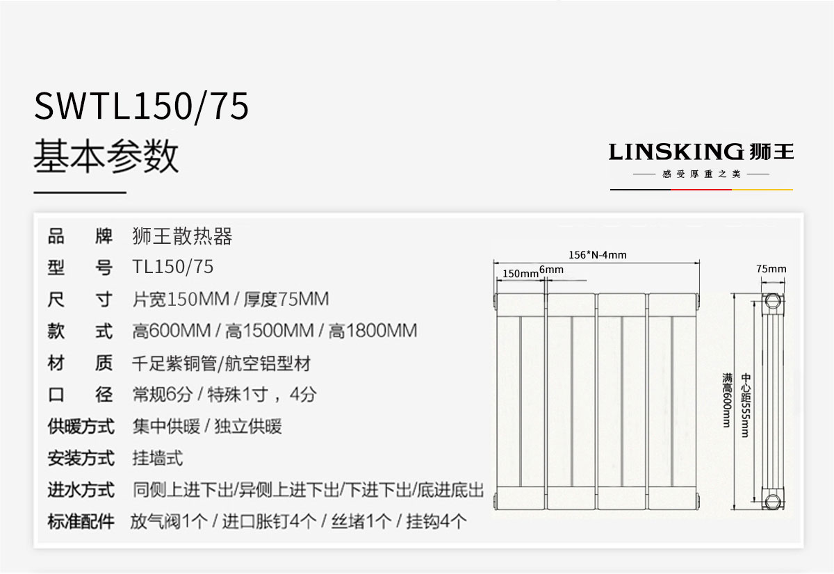 銅鋁復合暖氣片/散熱器_150x75