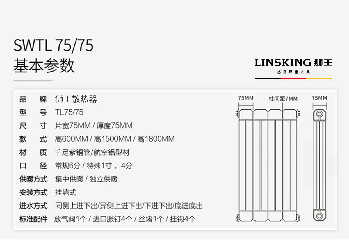 銅鋁復合暖氣片/散熱器75x75b